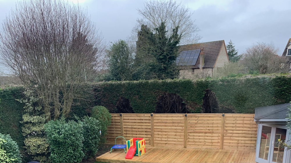 We removed some dead conifer bushes and have now been left with some unsightly gaps between the healthy bushes. Does anyone have any suggestions about what we could do with these gaps? We can't really plant anything due to lack of sunlight and also the roots of the existing conifers. And we're worried trellis will be too high as there's nothing to attach it to at the top. Any suggestions at all??