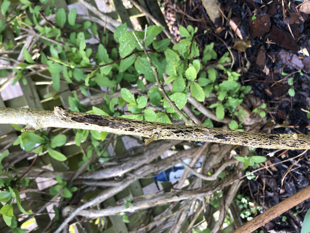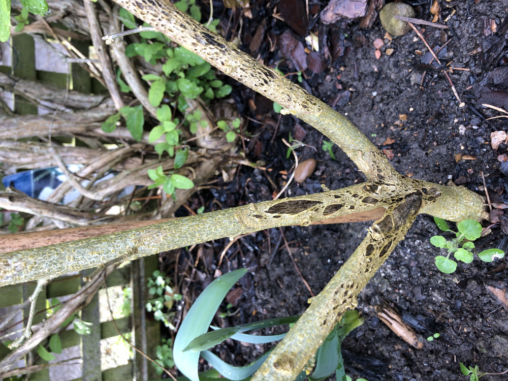 Hi everyone, any idea what this is...I have a number of hibiscus but this one hasn't faired well over the winter and I'm not sure if its dead? The bark has split from the root upwards but isn't all over although it doesn't look good at all. The splitting looks kind of like lacework if that helps. Sorry - images seem to have uploaded the wrong way around.