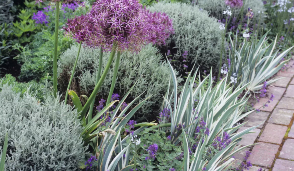 Can anyone tell me the name of the variegated spikey plants by the path please? I'm in the middle of designing my border and I love to include these.