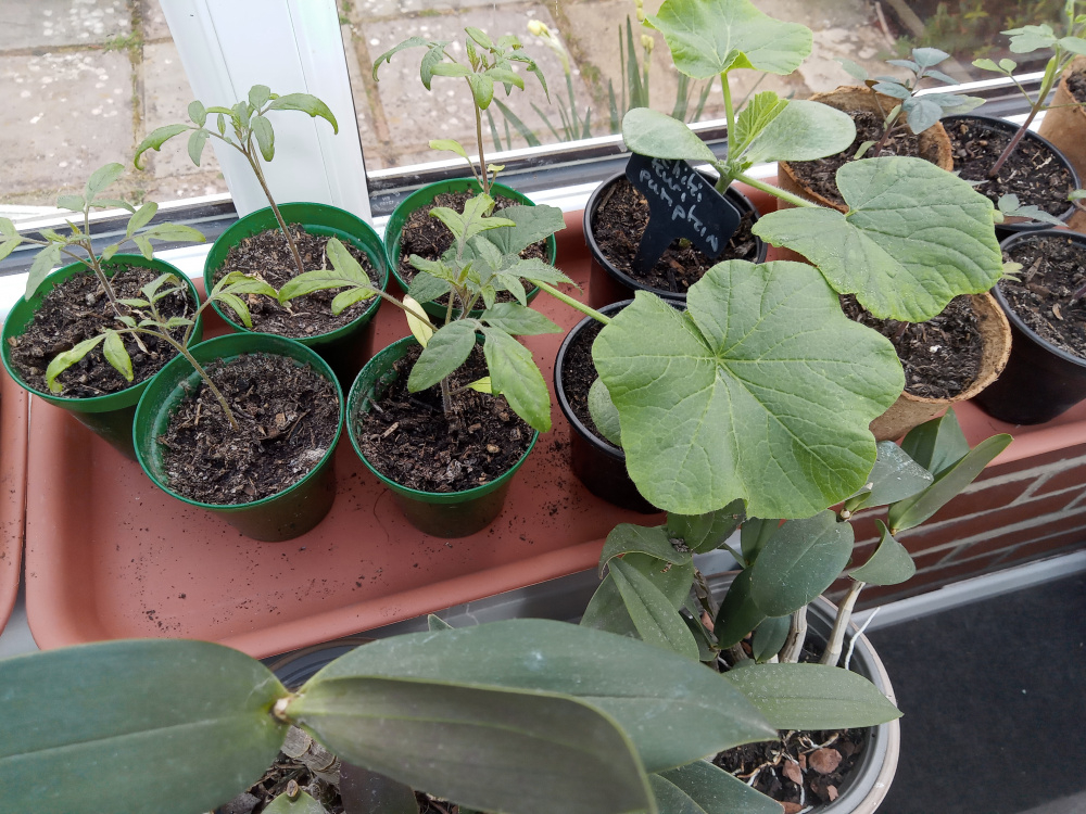 I only pot on when I have to, Toms, I have a green house full of stuff I had to pot on,2 conservatory windows kitchen window sill, the table is 6 by 4 feet and full
