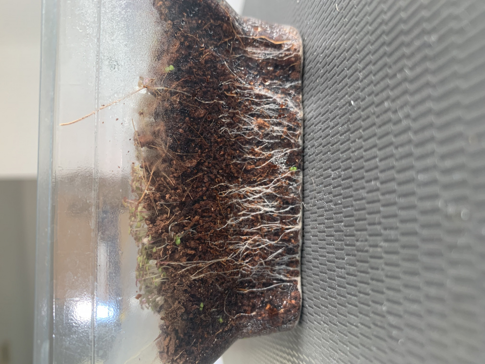 tiny and don’t seem to be growing much. Background: located in central London. Seeds germinated in 4 days on a sunny SE facing window. They’re planted in coco coir and I water from the bottom, letting them slightly dry out before watering again. There doesn’t seem to be any sign of mould/fungus and none of them appear to have died off - they just don’t seem to be growing much. They’re about 5mm tall after 8 weeks and are just developing their 3rd leaves. The roots on the other hand seem to be growing well.