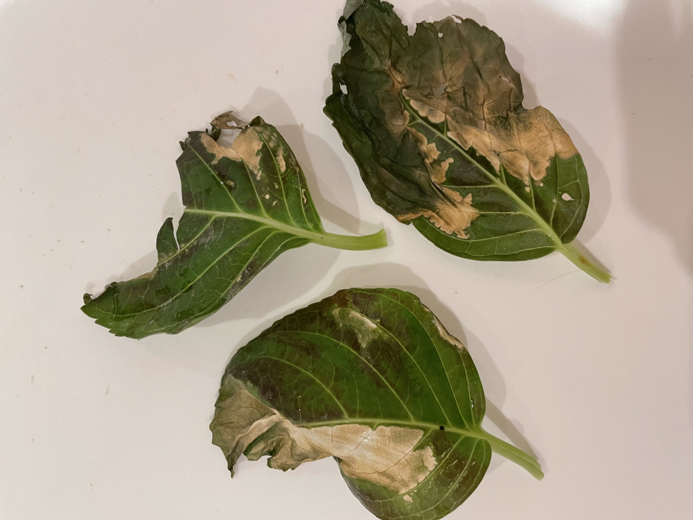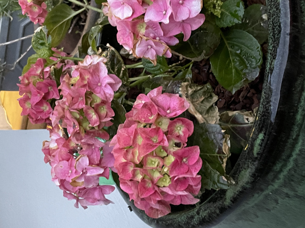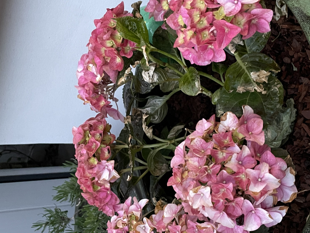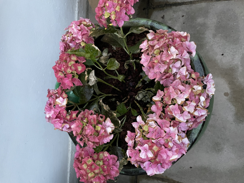 I planted a few lovely hydrangeas in some pots outside and they are doing well and look healthy but one is looking decidedly sad and unhealthy. I’ve watered it lots but can’t see to get it to perk up. Any ideas or suggestions on what it is that’s causing the leaves to look so bedraggled? Any ideas to fix it?