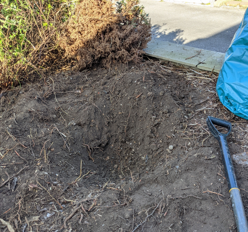 We have a New Zealand flax (Phormium tenax) that's gone wild and need to be removed. I attacked it today with a cordless Makita reciprocating saw, and got it back to a stump. However it's huge. What would be my next step to get the root out? Any tips gratefully received.