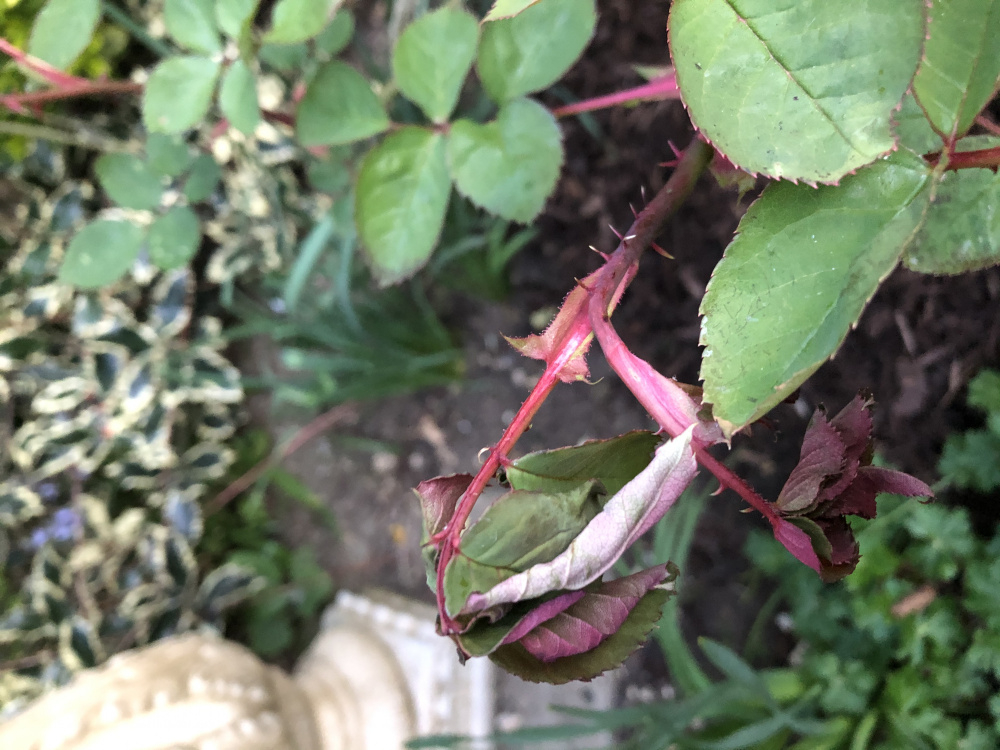 I’ve noticed on two of my shrub roses that the new growth has drooped and gone crispy. Any ideas?