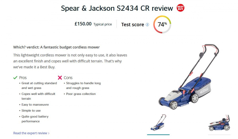 From my own research using Which? it seems the cheapest 'good' cordless lawnmower is this one although ironically not good at cutting tall grass!
