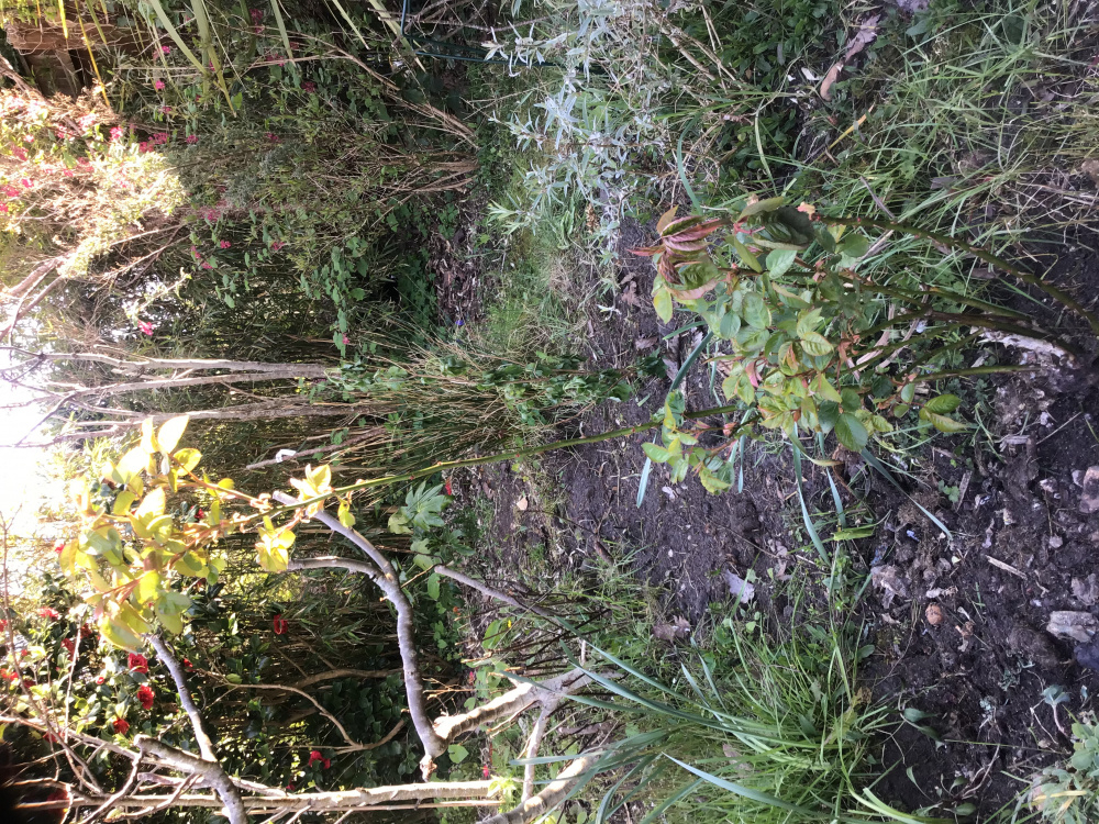 This rose was planted about 4 years ago and it was only last year we had our first blooms. It looks very healthy now but wonder if the one much longer stem (which is about 20” longer than the others ) should be cut back or just left ? Thanks . Apologies that the photograph is not in portrait mode.