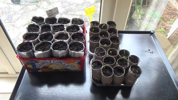 Alternatively start them in root trainers (I use newspaper or cardboard tubes) which can go straight into the ground. These are my peas but the principle is the same.