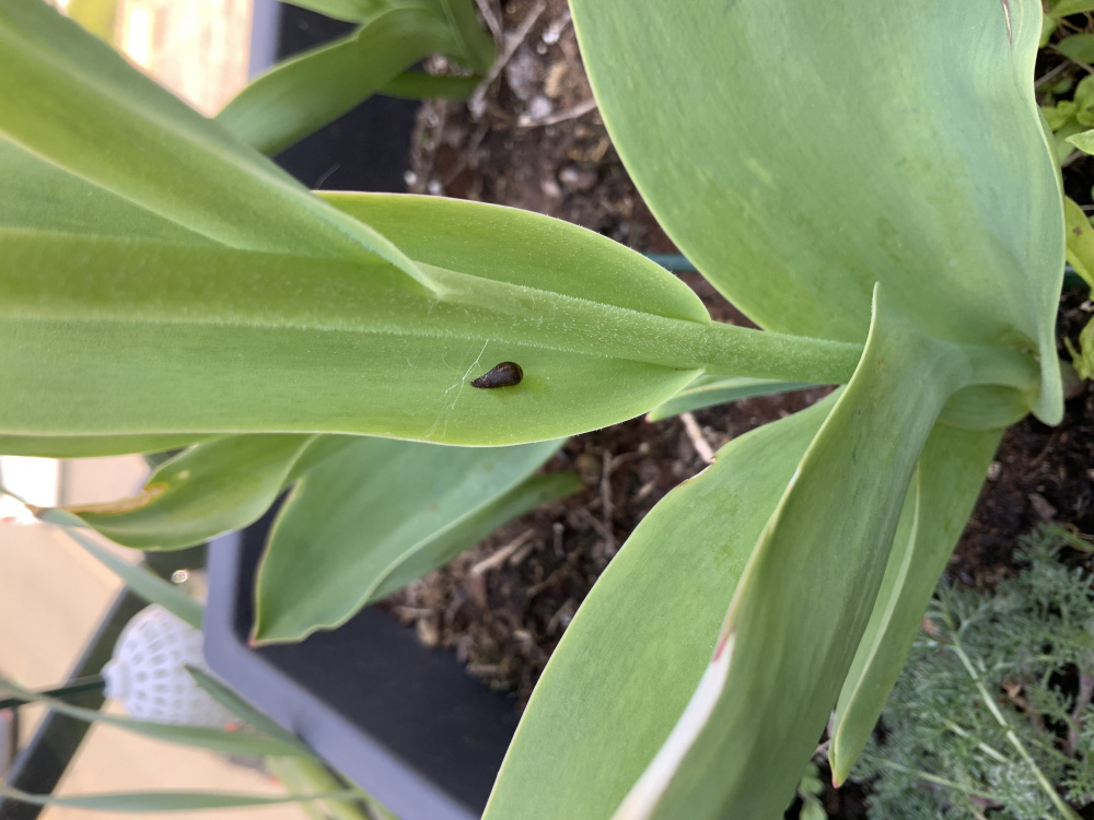 Each tulip has one single “thing” attached on a leaf. I assume it’s an egg of some description, any ideas? Probably more caterpillars..... 🐛.
