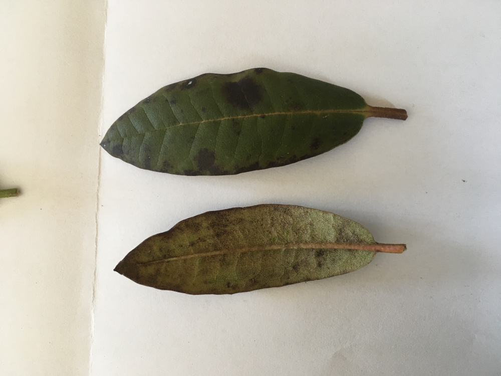 Hi again everyone, on inspection of my azaleas I have a couple of issues, one with significant blackspot on an azalea and another powdery issue on another dwarf rhododendron. Any ideas welcome with treatment?