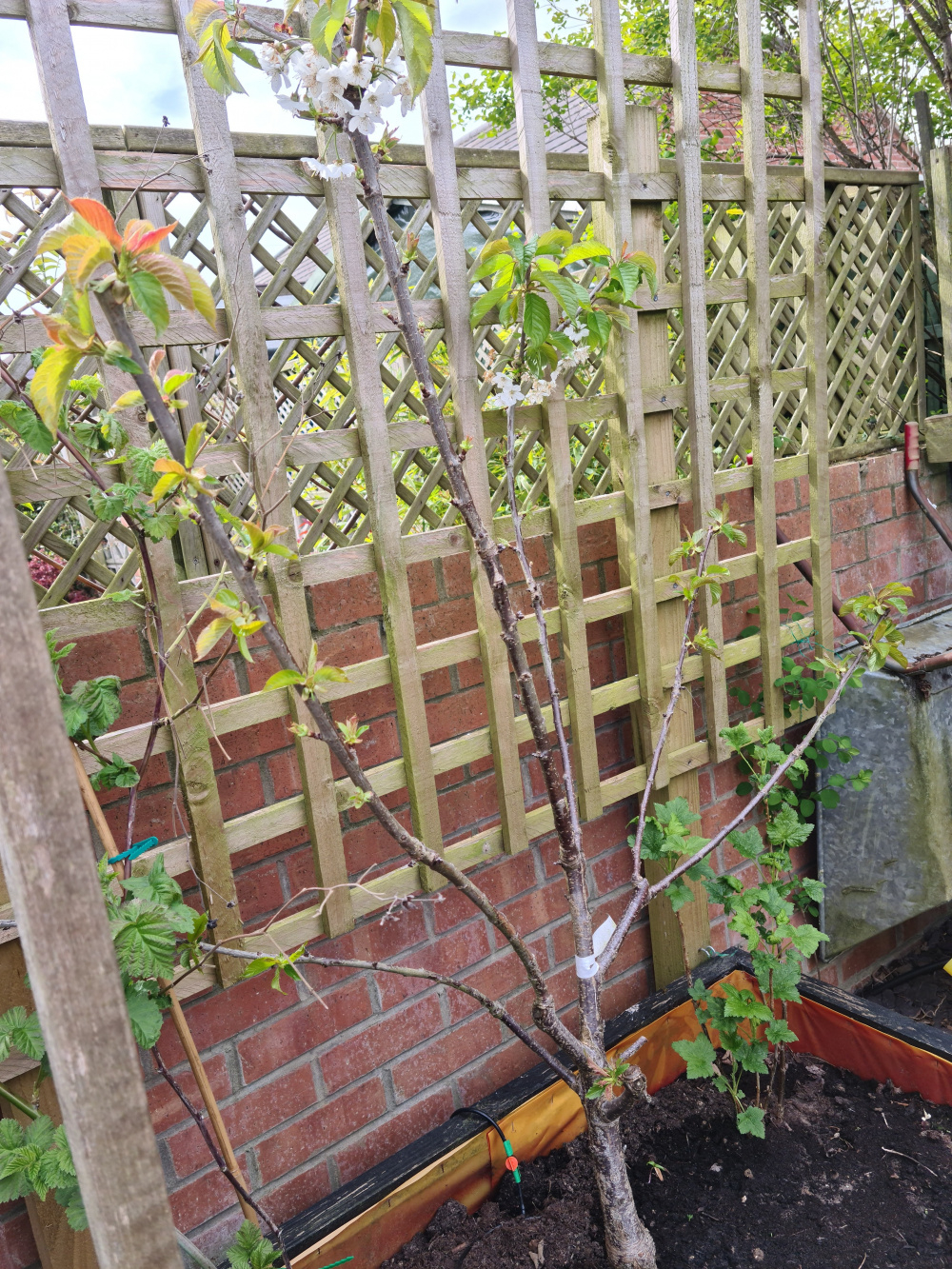 This is a question ready for later in the year. I took the photo now as it's in bloom, and easy to see its basic shape. My question is now its as tall as I want, and it's only flowered on the ends of the branches, how far can I cut it back to promote new growth and fruit lower down . Thanks for any advice.