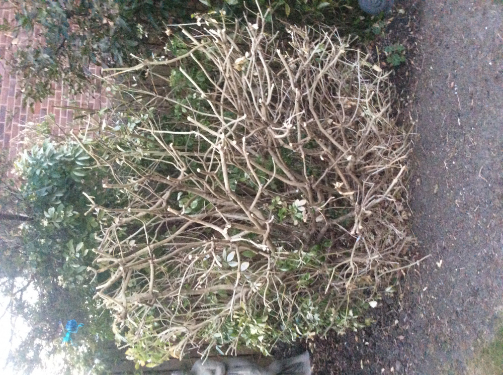 Hi I had a large Choisa bush cut back quite brutally in March but it has since been hit by the heavy frost and now looks like a mass of bare twigs although there is some greenery right at back of the bush. I want to know if there is any chance it will come back or should I try and remove more of the bare branches at the front? Any advice appreciated.