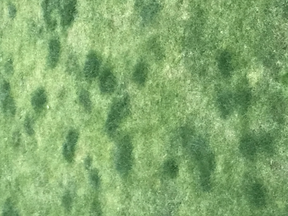 Lumpy and discoloured grass