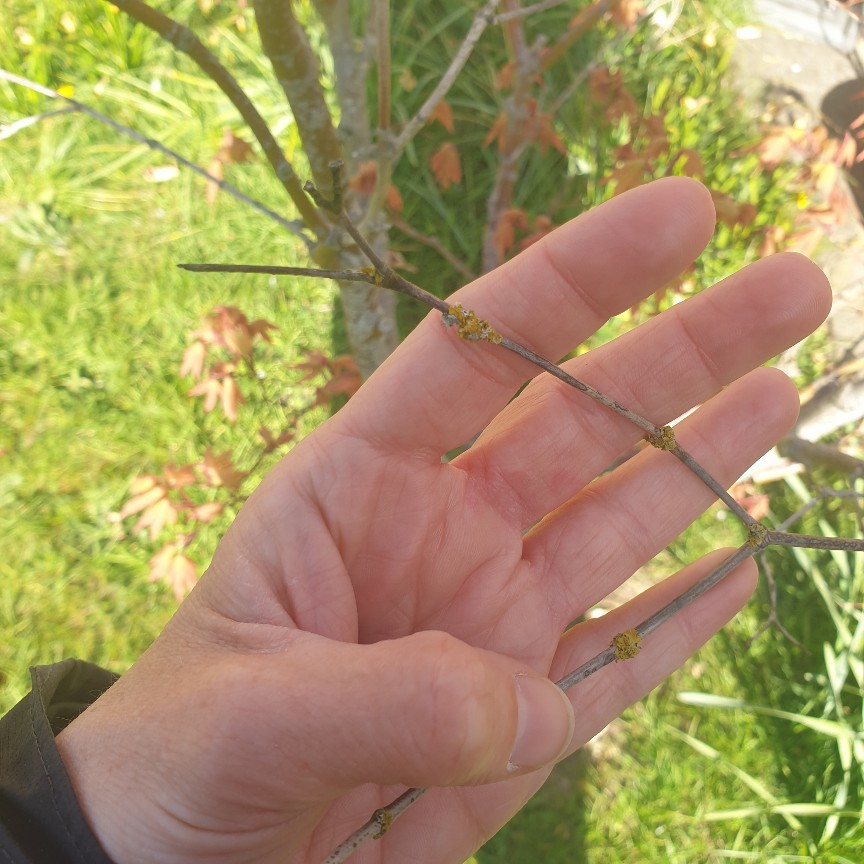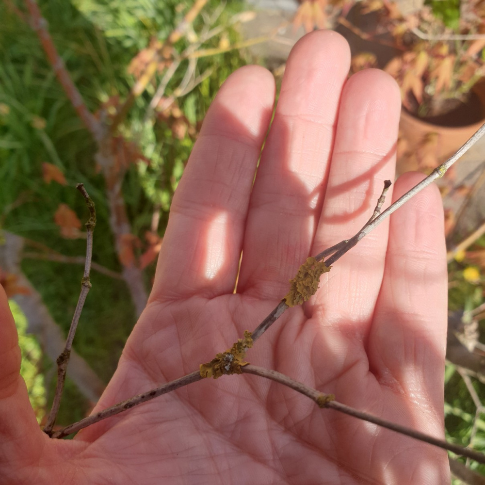Edited to add: the yellow on the twigs is nothing to worry about - it's lichen, which is a sign that the air is clean. It won't do any harm.