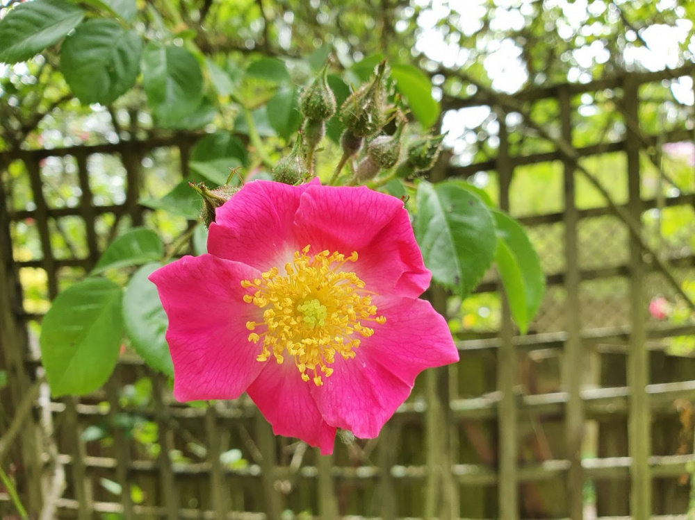 Ah here is a picture of last year's flowers. I posted it in another thread but seems there's a lot of roses with very similar flowers. There is only one here but they tend to be clustered.