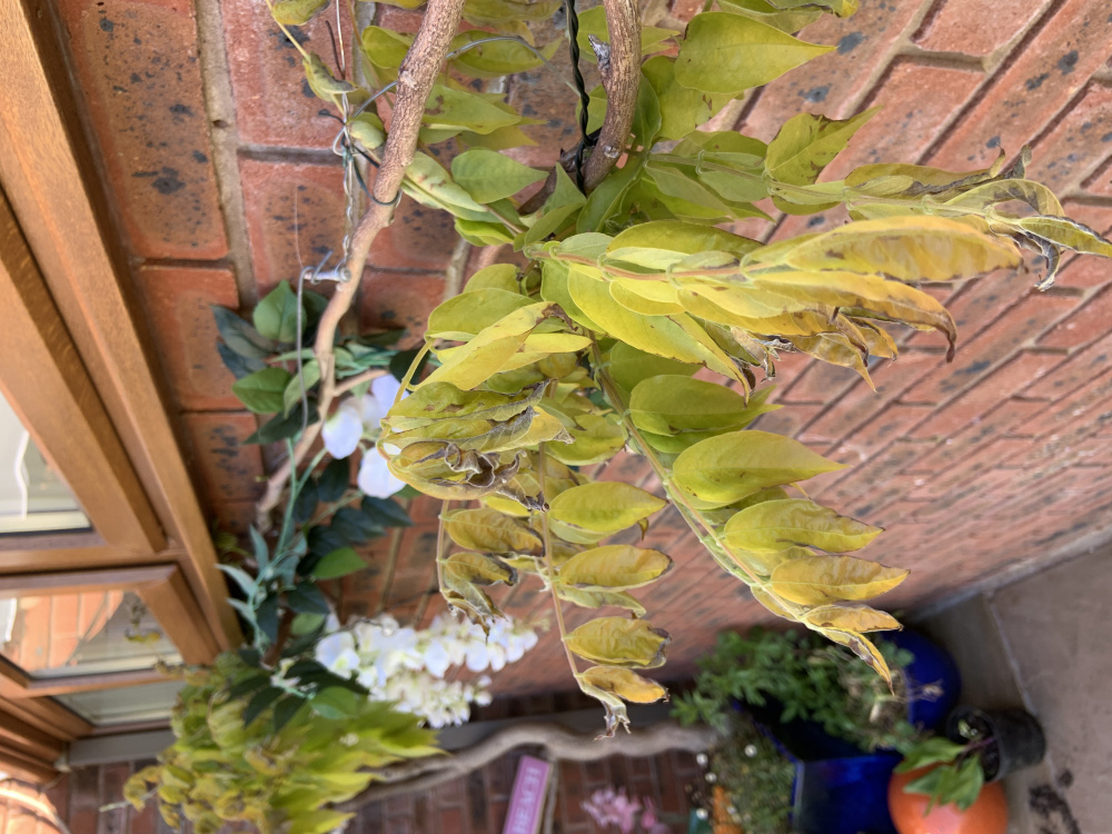 wisteria is showing signs of browning on the edges. It’s a well established plant of ten years and well watered and drains soil but I keep getting this