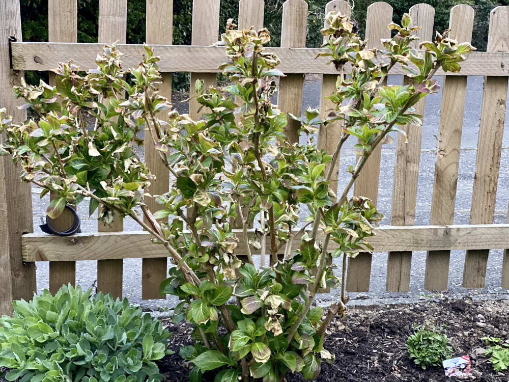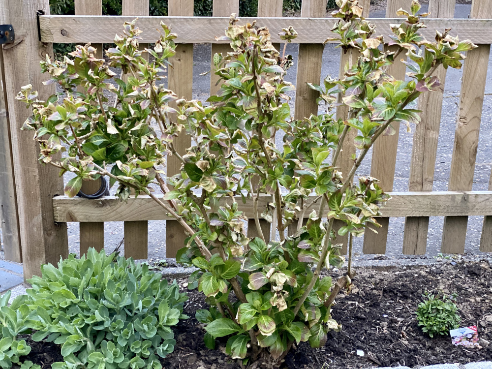 My hydrangea is looking awful. It’s very leggy and damaged by frostbite.