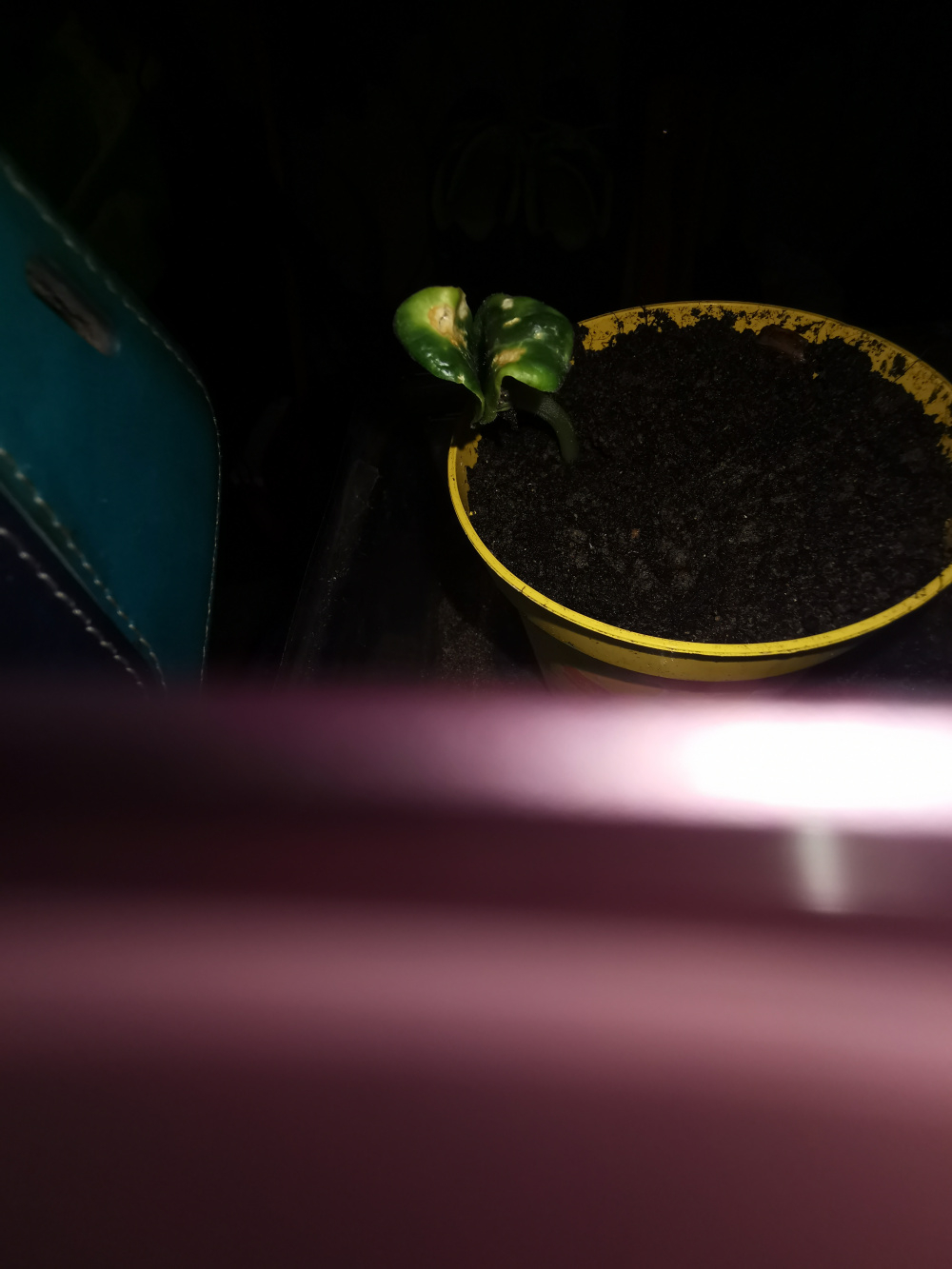 Dont know if this will be just superficial or an issue with the courgette seedling itself. I've grown it under the grow lights like the others and they're fine, but this 1 with the brownish parts... Is that scorched? Or will it be OK? 0