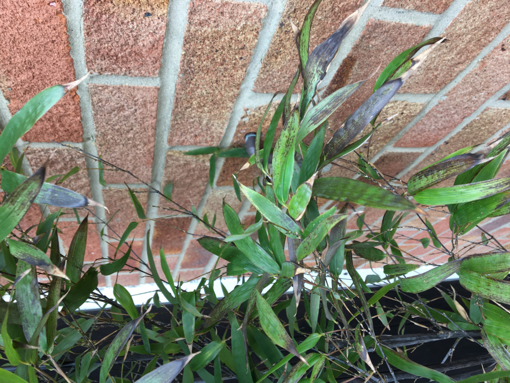 Hello I wonder if anyone can offer advice on what is happening to my bamboo please? The leaves are turning black, I can’t see any powder or bugs on them. I’m very concerned it will die. It’s potted at the moment, and I have a larger pot for it to go into but now worry i will stress it more. Iv already lost one to wind, and can’t afford to loose this one as well. I only bought them the other month