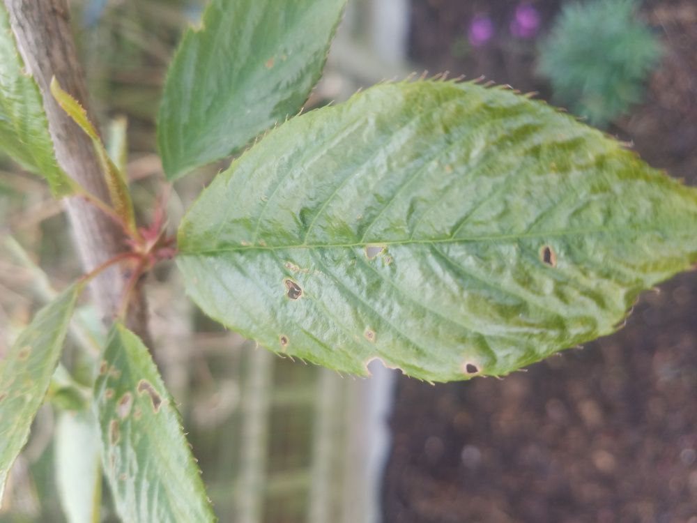 Hello all. We bought flowering Prunus kanzan cherry tree last June and planted it looking forward to it blossoming in Spring this year. However it didn't blossom(bar just 1 or 2 on the stem) andnow many of it's leaves have small holes in them. I've recently mulched the beds with some well rotted manure and made sure there is plenty around the base of the tree. Is there anything else I should be doing to make sure it's ok and hopefully will be well enough to blossom next year? I've attached some pics of the leaves for any resident Cherry tree experts to scrutinise! Thanks in advance. Sean
