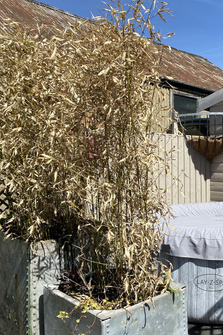 I’ve got 6 bamboo plants in a very large container. They’ve been battered by the winds since winter! I’ve tried to protect them, but nothing seems to have worked. All 6 have green stems still (that’s my little ray of hope!) but all the leaves are completely brown. They’ve been like this for months. I’ve chopped the tops, kept watered and ensured they have a lot of space around their root balls. I’ve been waiting for any signs of new growth, but nothing yet!