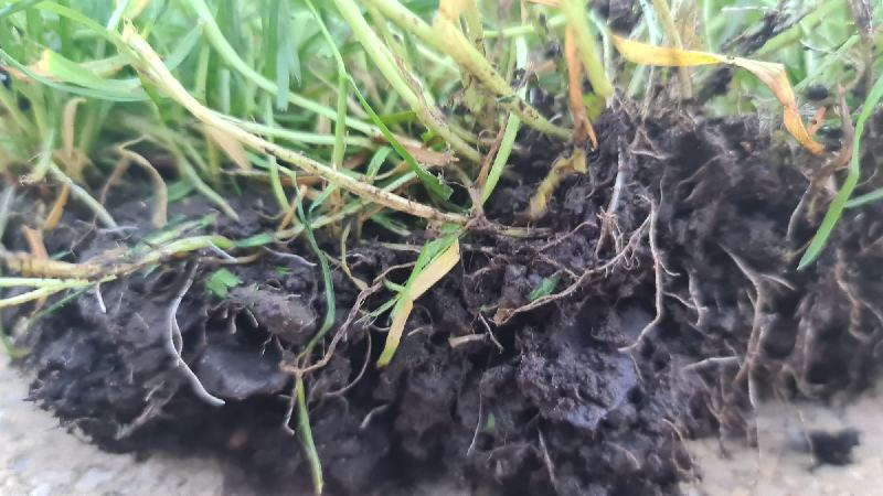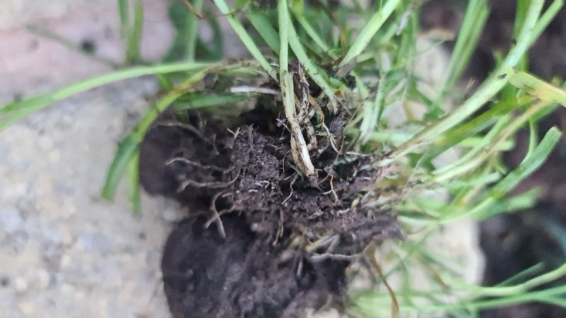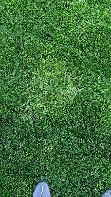 There are many different species of grasses. Good news; this isn't couch grass, which is taller and has wider leaves. Basically you have two different species. Your grass looks as if it is grown from seed, rather than turf. Either buy more of the seed you have sown or go to where it was bought. Cut out the grass that looks different and reseed. Alternatively cut small pieces of turf from your present lawn and replant them in the odd-looking areas. Refill with sand rather than garden soil, which may have weed seeds. Good luck.