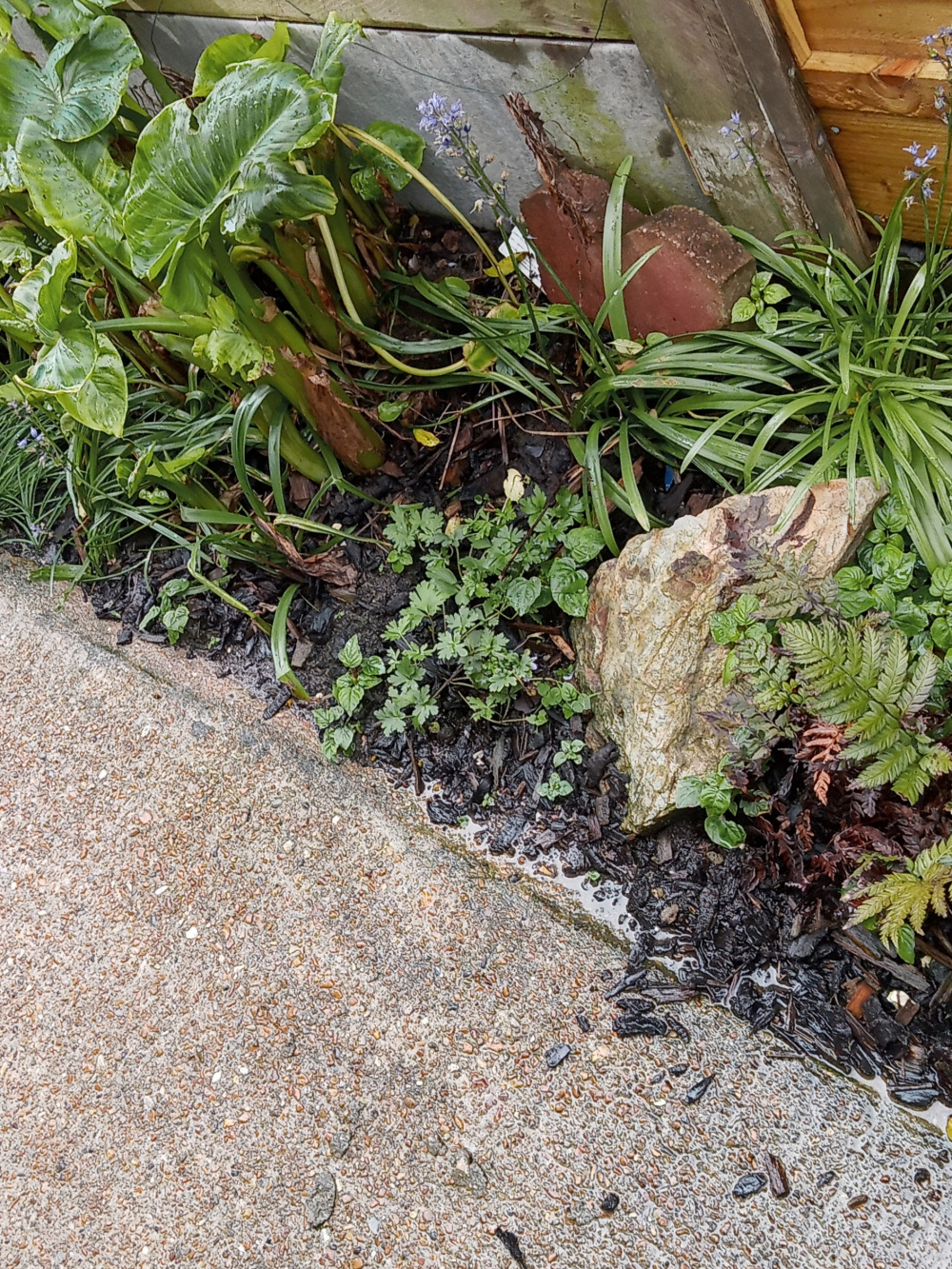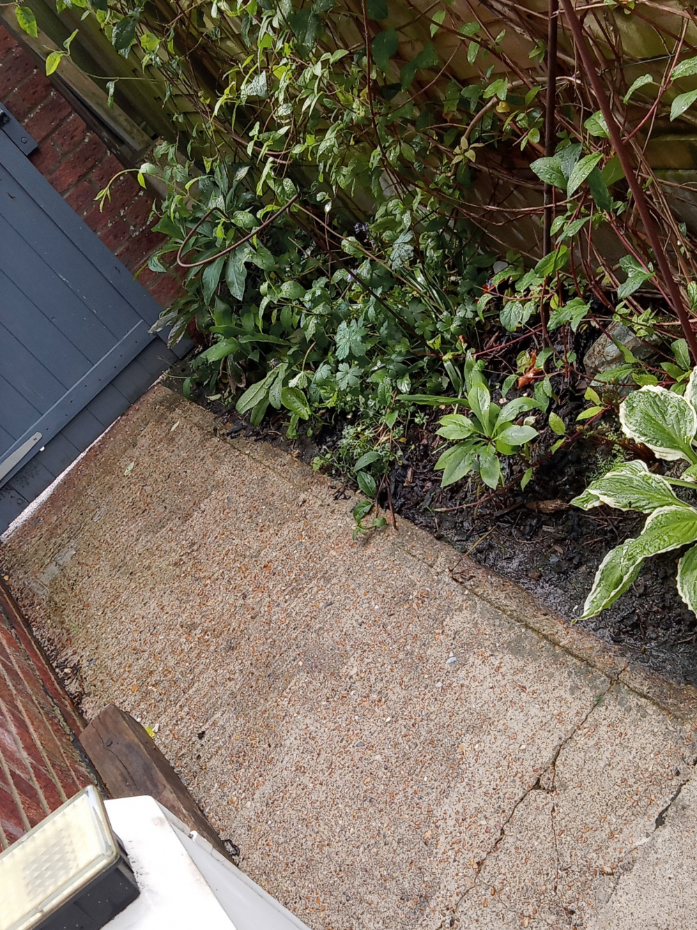 Whatever goes in - needs to be thin - so I can get my lawnmower and wheelie bin past. They take up the width of the path.
