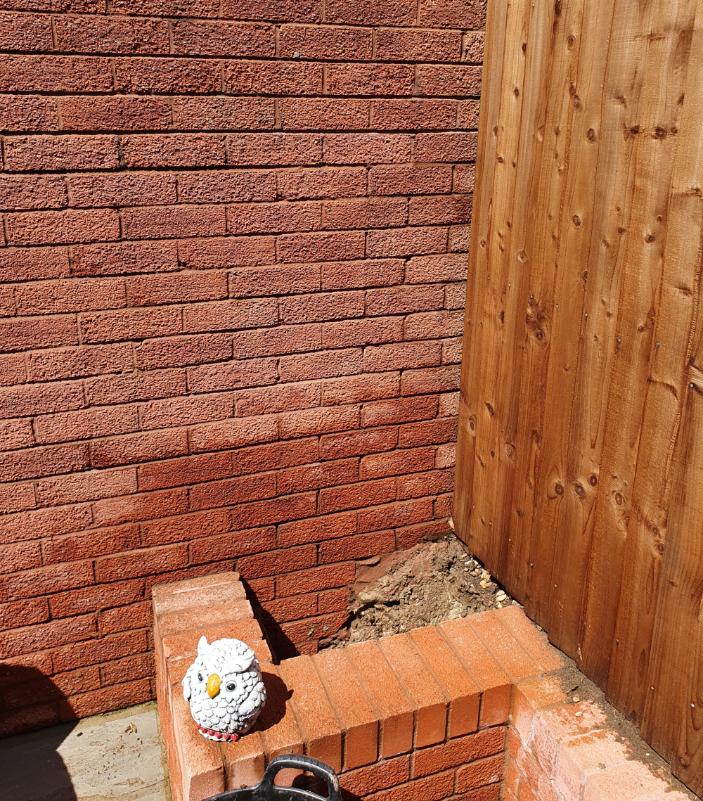 A contractor built a retaining wall and fence in 2019. They filled this hole with clay sprinkled with gravel.