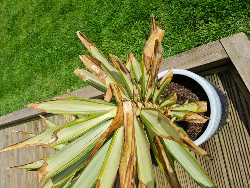 Please help! We bought these very expensive yucca back in November. They all looked a bit worse for wear but we thought it was that they were outside in bad weather conditions.