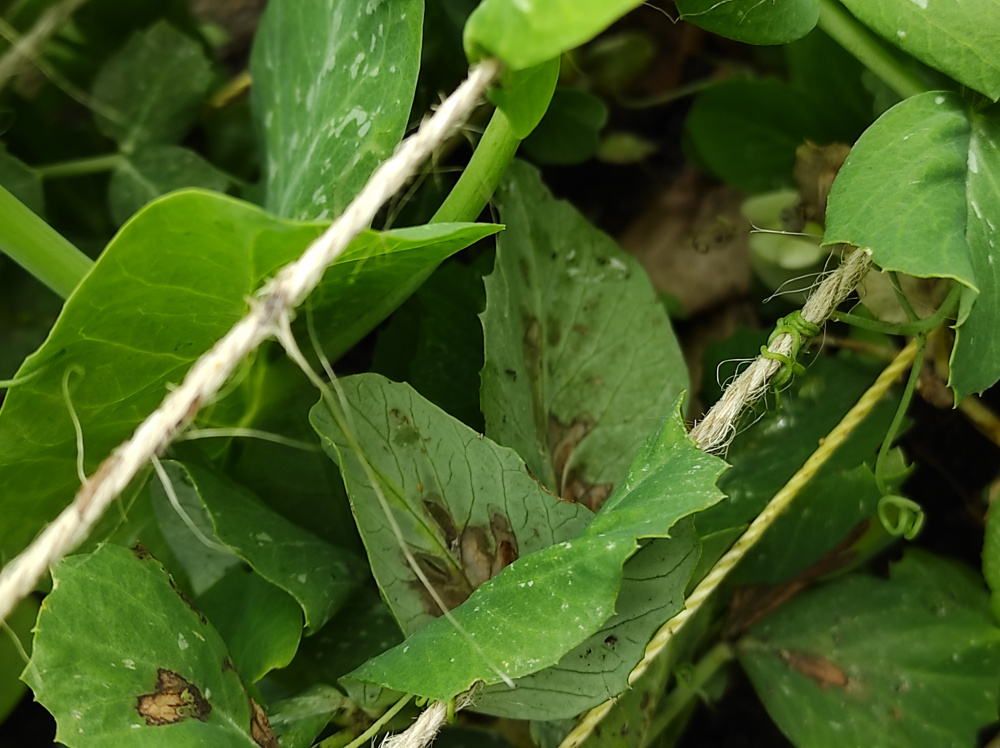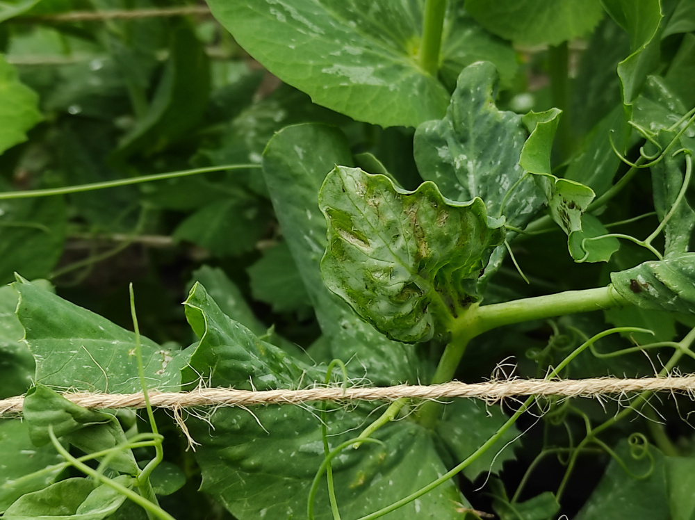 A few of my peas have suddenly shriveled and developed lesions on the underside of the leaves, any ideas? Thanks