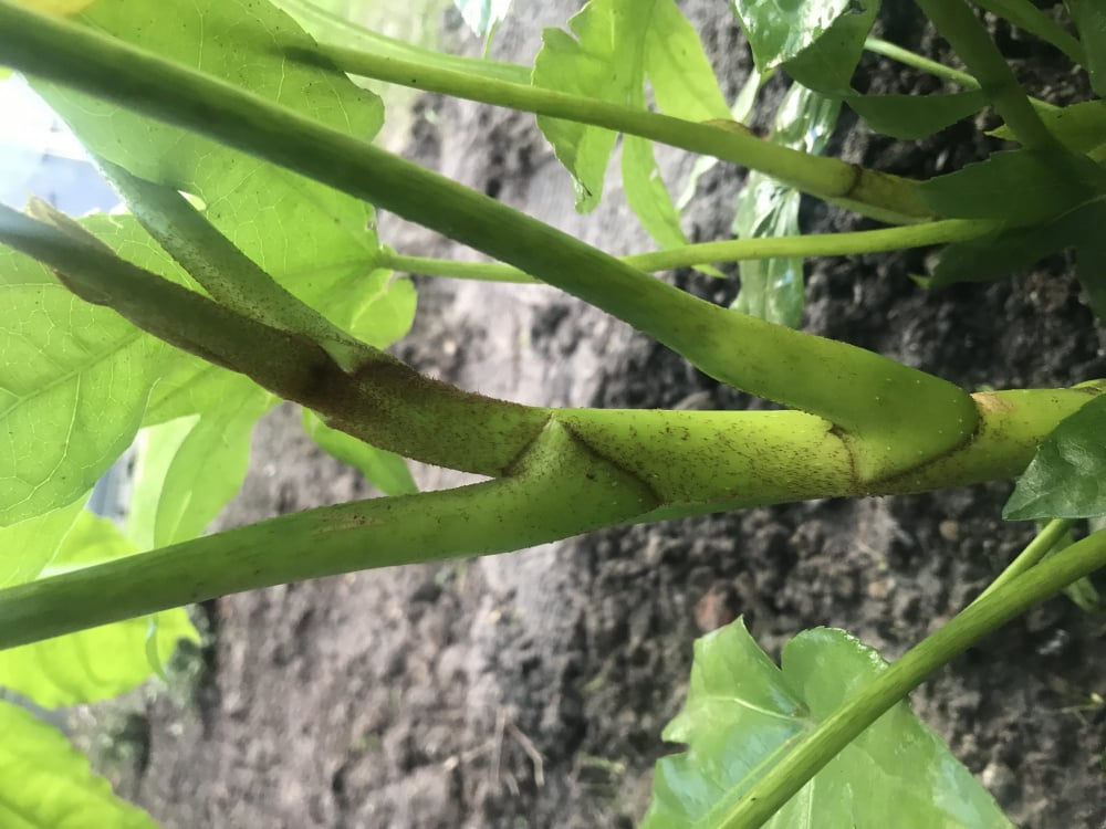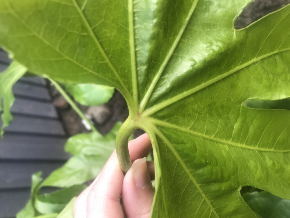 I planted my new Fatsia Japonica about two weeks ago and have noticed the leaves have started to deteriorate. On closer inspection I can see the stems and especially the new growth is covered in reddish brown spots (fungus? eggs??). What is this? Any advice is greatly appreciated