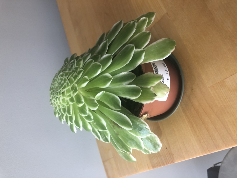Hello a couple of months ago I bought a Aeonium tabuliforme which looked great but now it looks like this and I’m not sure what I’m doing wrong. It’s in indirect sunlight next to bifold doors. Any ideas?