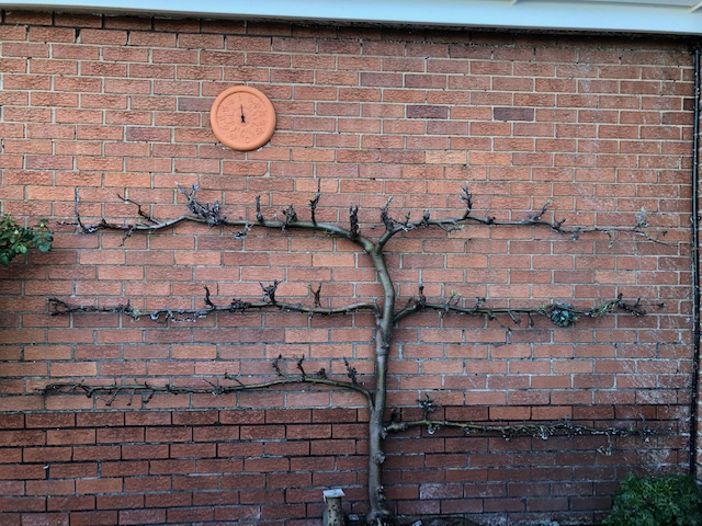 We had an incredibly dry April which is just the time when your tree would have been trying to produce blossom and leaf buds. I was giving my freestanding espaliered pear two buckets of water three times a week throughout April, pouring it gently over the root area so that it soaked in and didn't run off the surface.