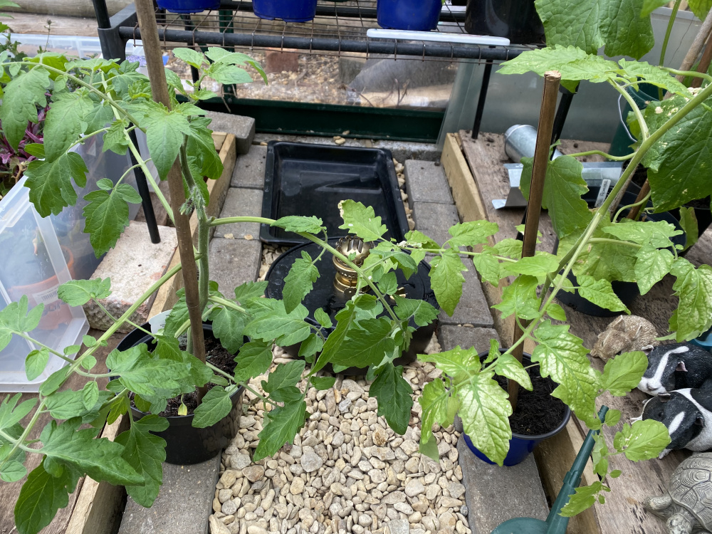 They've been indoors up until now and have romped away, but they now look pretty sorry for themselves, with many of their leaves yellow, or just very pale green.