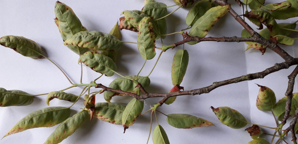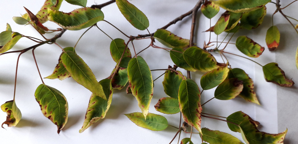 I planted a row of crabapple hedges and this has appeared on the leaves on most of the trees. Can anyone confirm for me if this looks like fire blight and if so what can I do? I bought these hedges as the ground is quite waterlogged heavy clay and was advised that they would do ok in this soil, but now i'm wondering with all the rain we've had, maybe they weren't the best idea? They seem to be growing really well apart from these patches.0