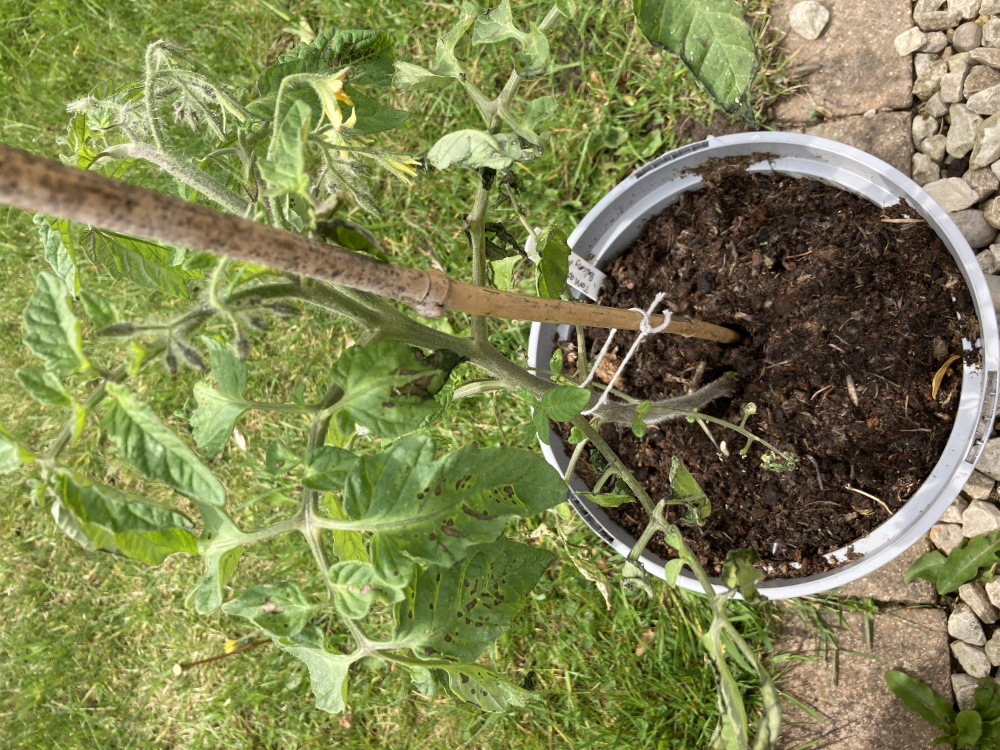 Has this tomato already had it? Not sure what disease it has. It has black spots on some leaves and some of the ends of branches are wilting, curling and drying up.