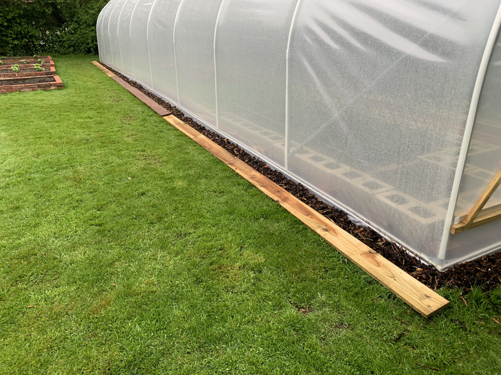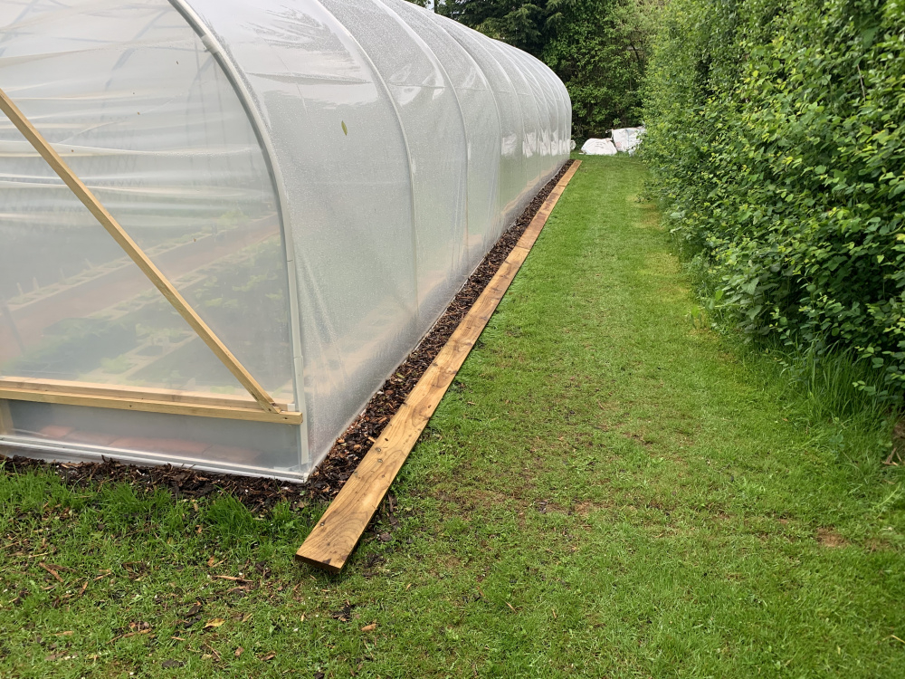 I wonder whether gravel boards recessed flat would be a cost-effective edging option between poly and grass?