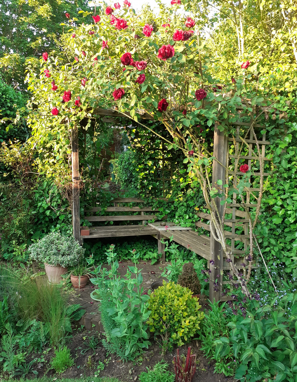My roses are all absolutely incredible,no rust or black spot,we are detached,big garden, bungalow, totally unoverlooked,and the garden is divided into areas, rooms,the one hubby just built is in a corner by the green house.