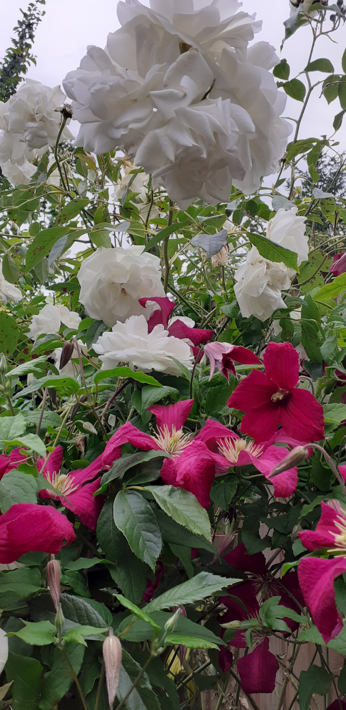 Another rose I like a lot is Guirlande d'Amour (it is pure white hybrid musk, bred by Lens, sold by Beales but seems to be only available as bare root in autumn). It is more like a big shrub but can be trained to some extent.