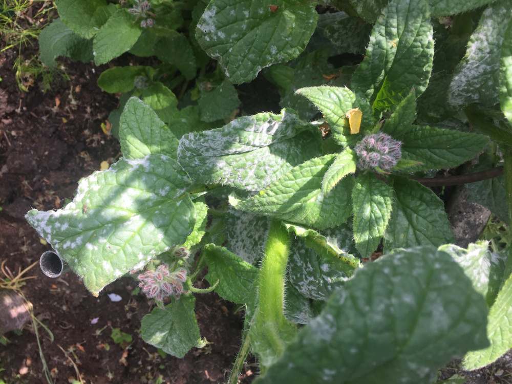 Borage plant leave have white stuff onnowy