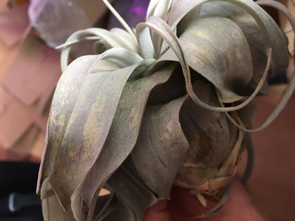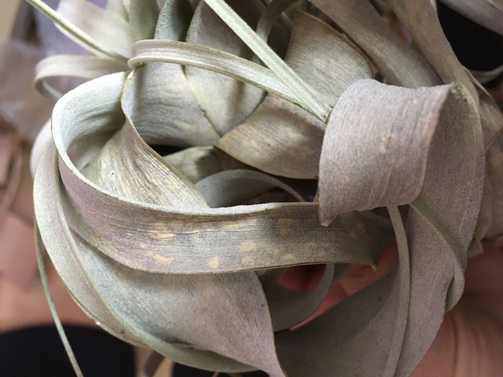 hi, can anybody explain what’s happened to my tillandsia xerographica? I’ve only had it two weeks, have misted it once, maybe twice. The leaves have gone weird... kind of mottled. It doesn’t look healthy. Help! 0