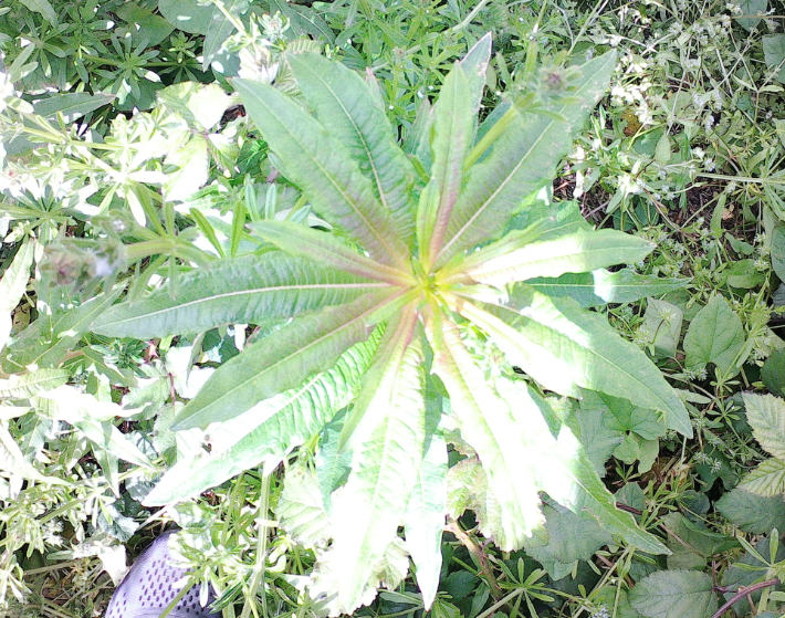 I would be very grateful if anyone could help identify them as they are having problems with his housing association officer who is claiming that they are cannabis plants, which from looking online do not look like any cannabis plants I can find, they have little to no smell with none of the sharp zigzag-shaped leafy edges of cannabis, or even look like any hemp plant, but they do look a little like the "curl dock leaf" but taller and thinner leafed, also, "Enchanter's nightshade" looks close...