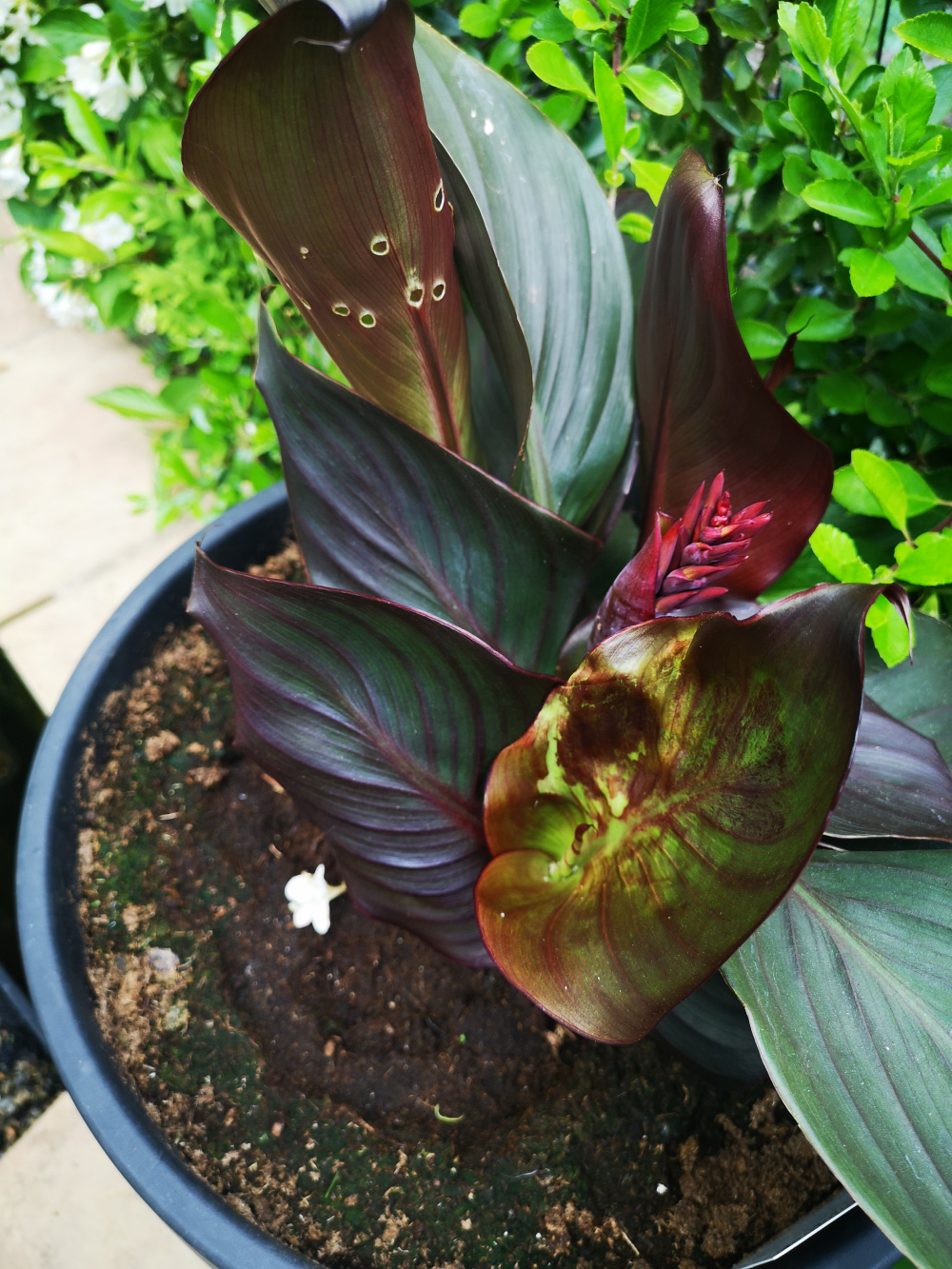 I was wondering if anyone knows what would make these circular holes in our Cannova Scarlet Bronze? It only seems to be on one leaf.
