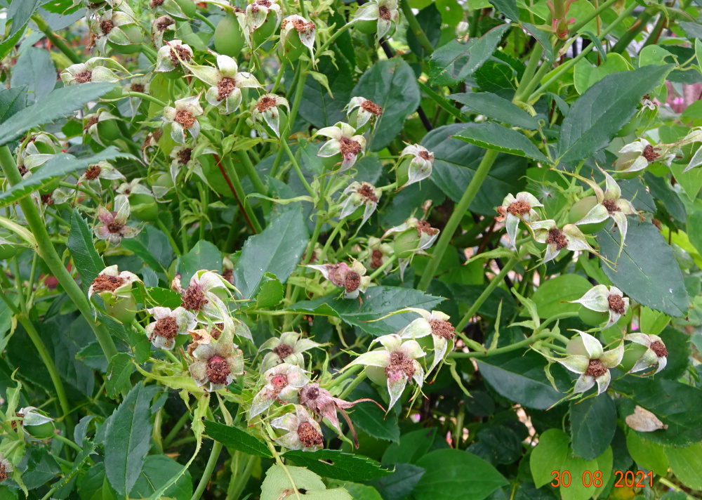 ..developing hips on Tottering by Gently.. the plant is a whole mass of these as I stop deadheading at this point..