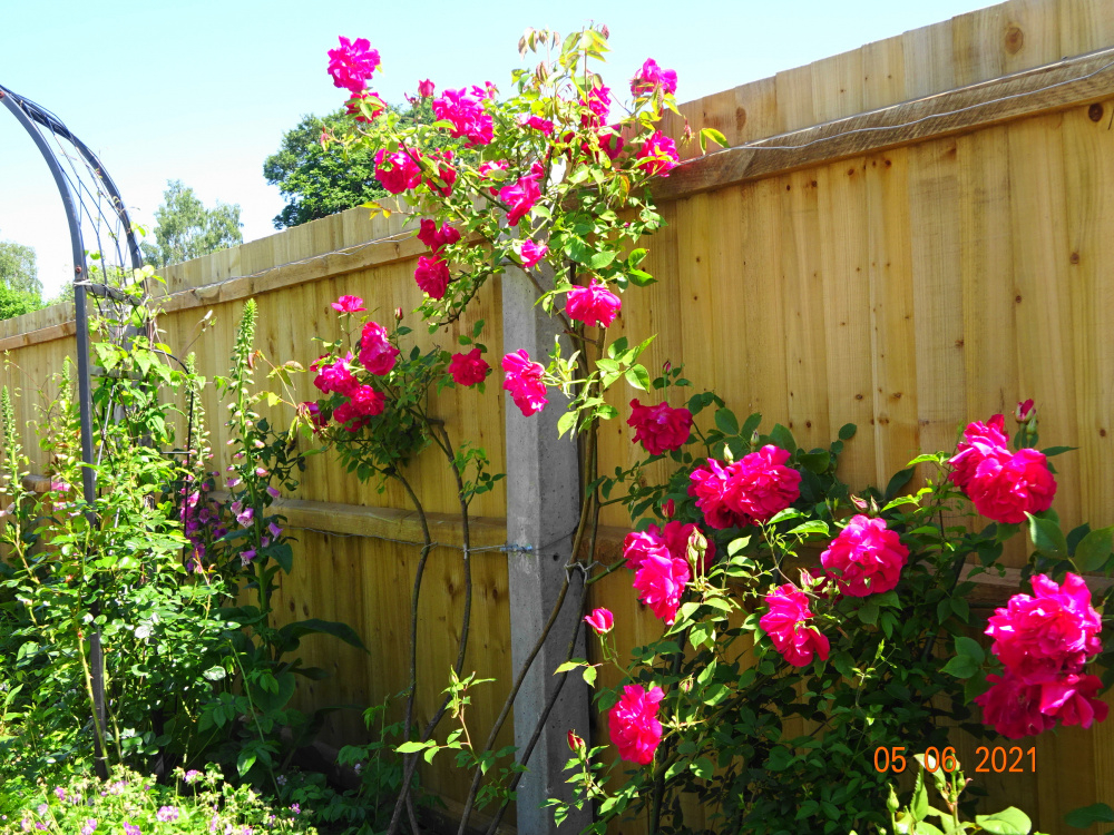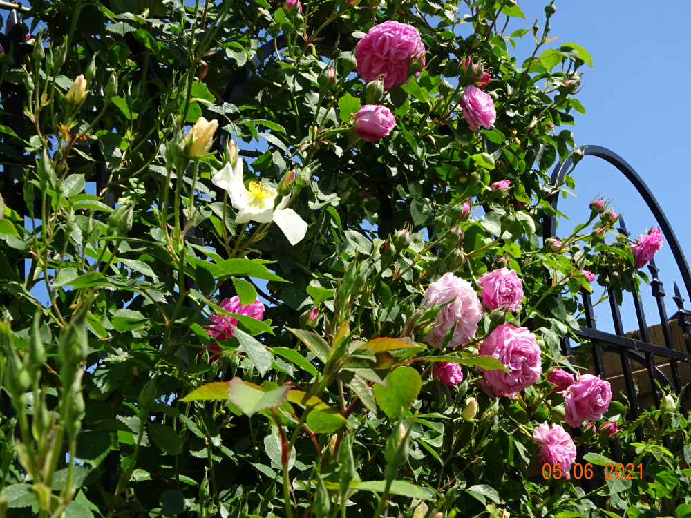 ..roses coming out on the Enclosure.. there are 8 different varieties for me to enjoy here.