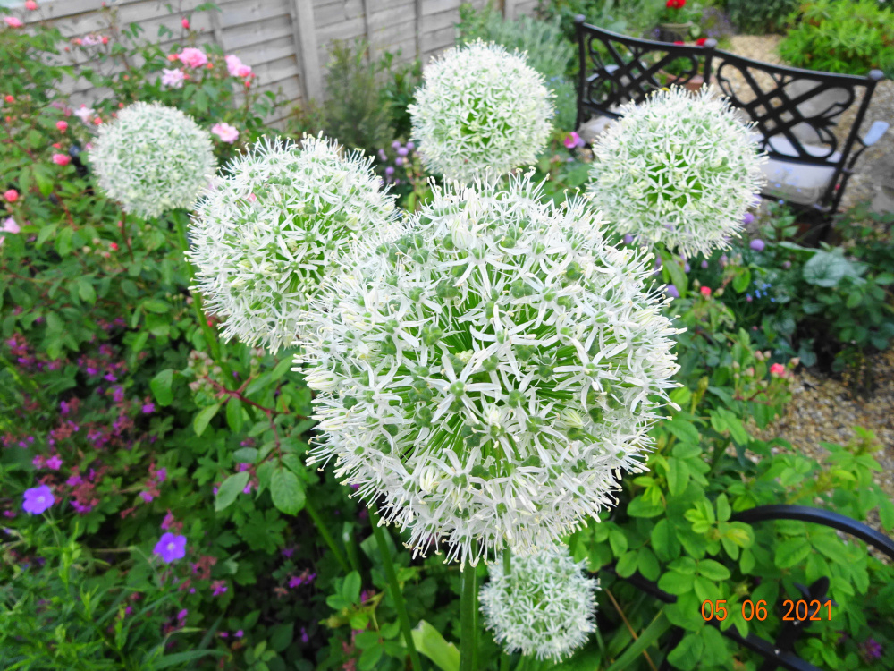 Allium 'Mt. Everest'.. I like to watch the bees swirling around these... they also have a pleasant scent..