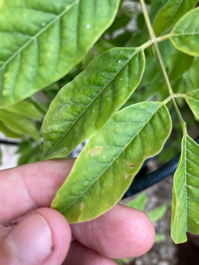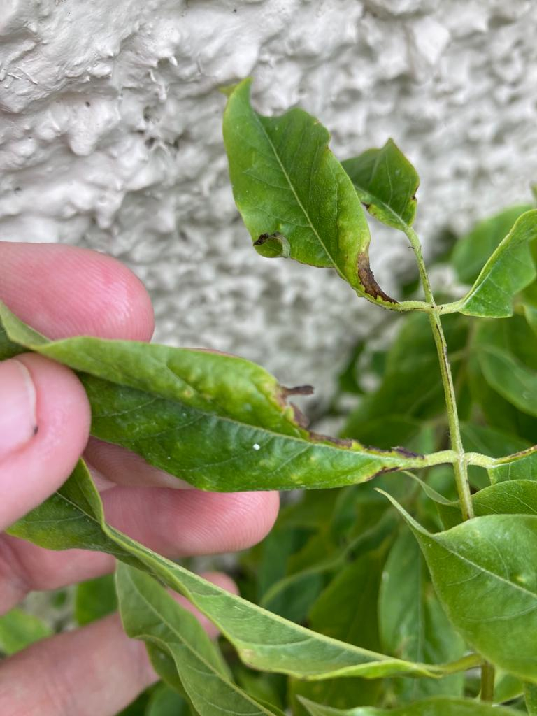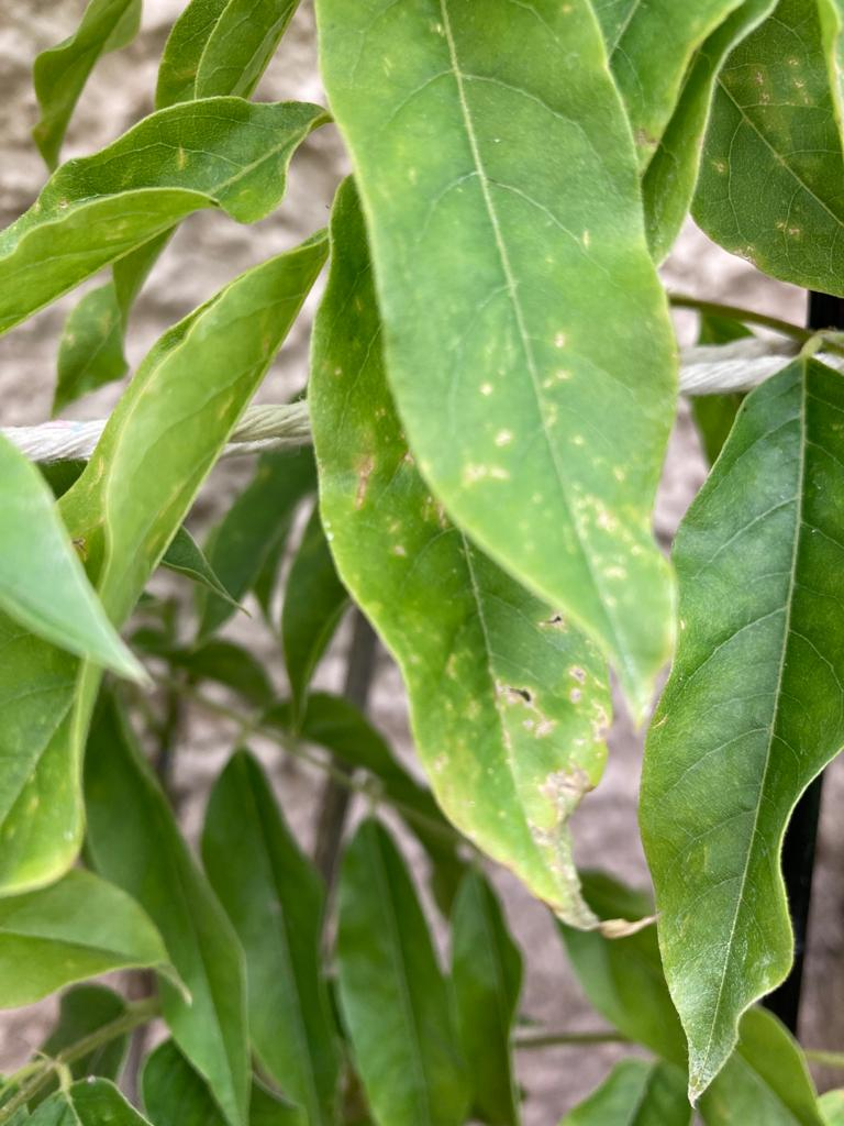 Hi everyone,could anyone advise me on my wisteria leaves look a little sorry for themselves. Did have a vine go very limp the other day and has not really recovered. Been watering and soil seems moist couple
