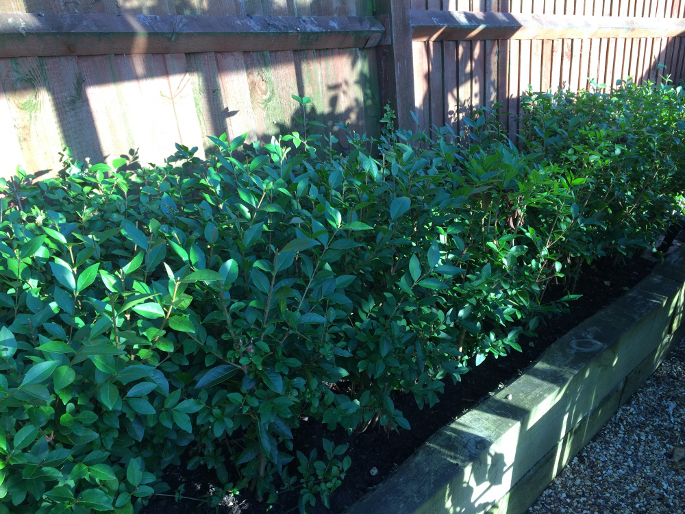 We now have Privet, and it is a pain to trim it, but we like that it is evergreen and doesn't usually need watering.