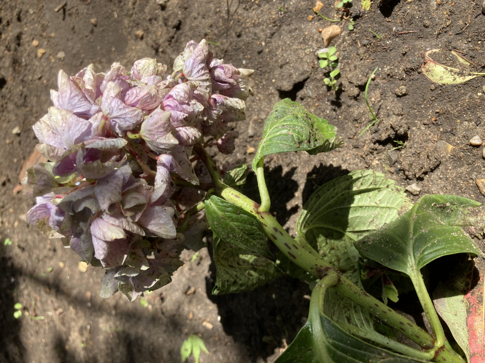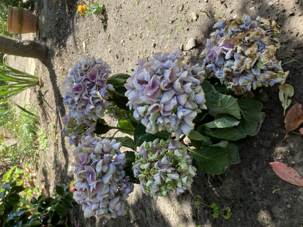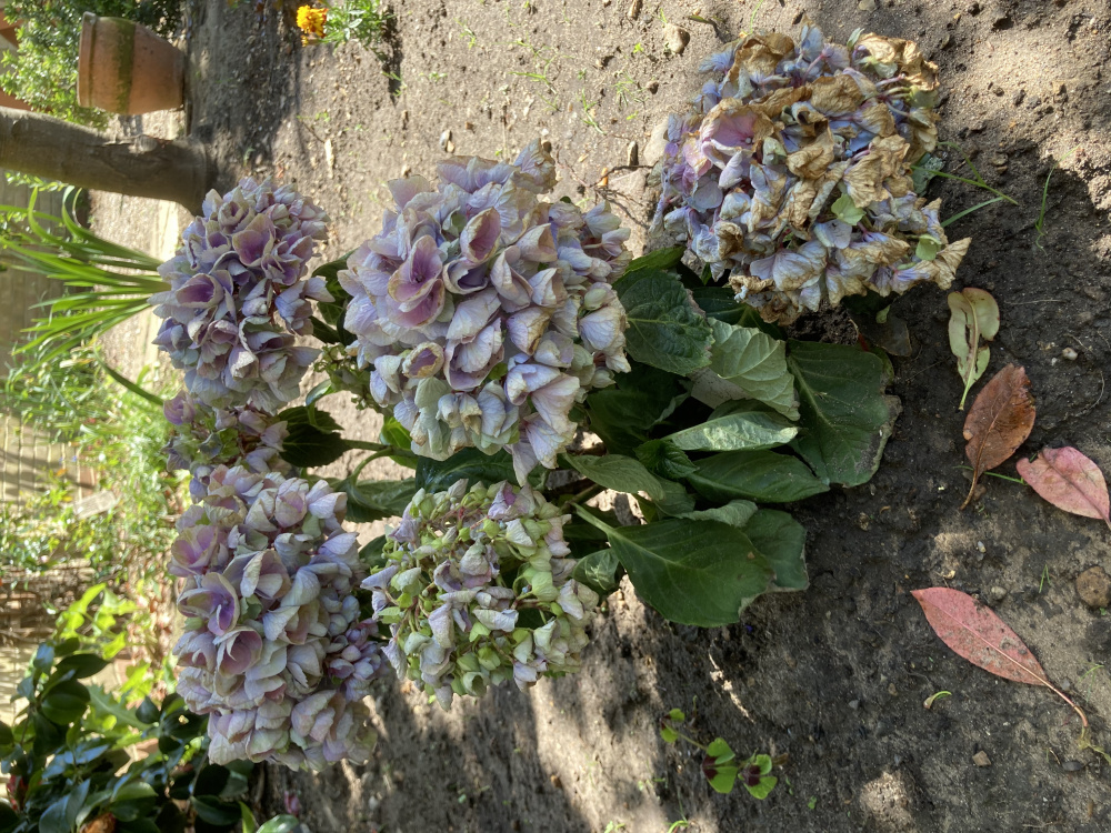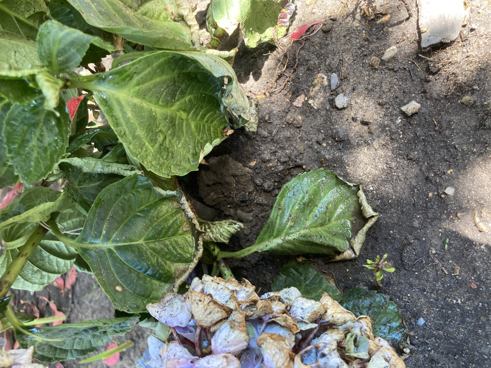 Does anyone have any idea what I’ve done wrong to my previously healthy hydrangea macrophylla bela bleu? I bought this a few weeks ago and planted it on 11th May in a deepish hole to which I added some peat free compost and a little horticultural grit. It’s planted under the dappled shade of an acer and a red robin on a north facing wall, but it does get a fair amount of sun. It doesn’t catch much rain because of the leafy canopy overhead, so I’ve been watering it daily. The soil is rich but free draining. In the same bed are some spring flowering bulbs, some french marigolds and some lettuce. It’s in close proximity to a camellia. When I planted it the flowers were fresh and healthy. Now they’re dying, and the leaves don’t look too fresh either. My husband thinks I’ve planted it too deeply, as the lowest flower is almost resting on the ground. He’s suggested I dig it back up and try to revive it in a container. Having already disturbed the roots once, I’d prefer to try to revive it in situ, though clearly if I’ve planted it in completely the wrong conditions and location I’ll have to dig it up and try again. Is it beyond retrieval? I’ve only fed it once (almost a week ago), with a general purpose plant food. Would more feeding help? Is the earth too compacted? 0