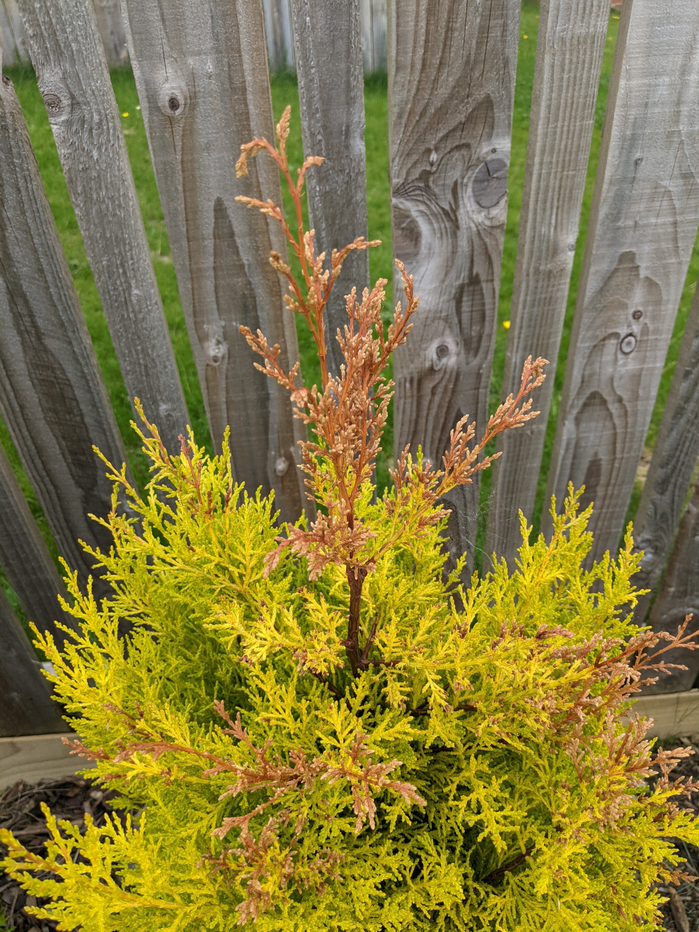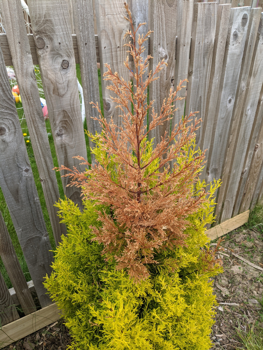 I'm after some help identifying some damage to my Goldcrest Conifers please & wondering if it's anything to be concerned about or if treatment is required.