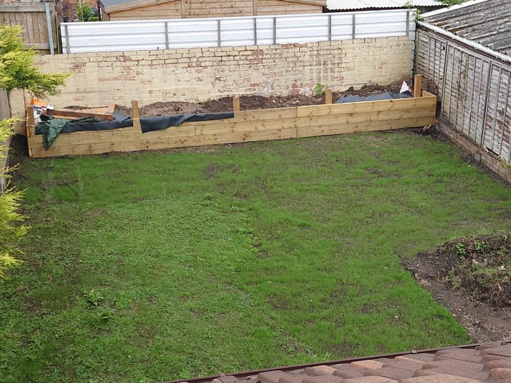 We still have lots to do in this garden. On the left handside is existing grass but it's full of lawn grasses and weeds, but I have planted new grass seed to help it out. On the right hand side, especially top right is the gravelly part.